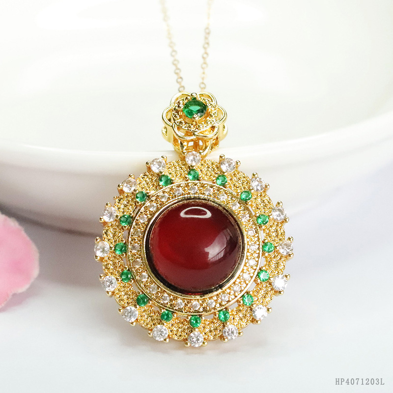 钰天然琥珀ペンダント血パー如意ペンダントネックレス復古ジュエリー卸売り代発HP4071201L