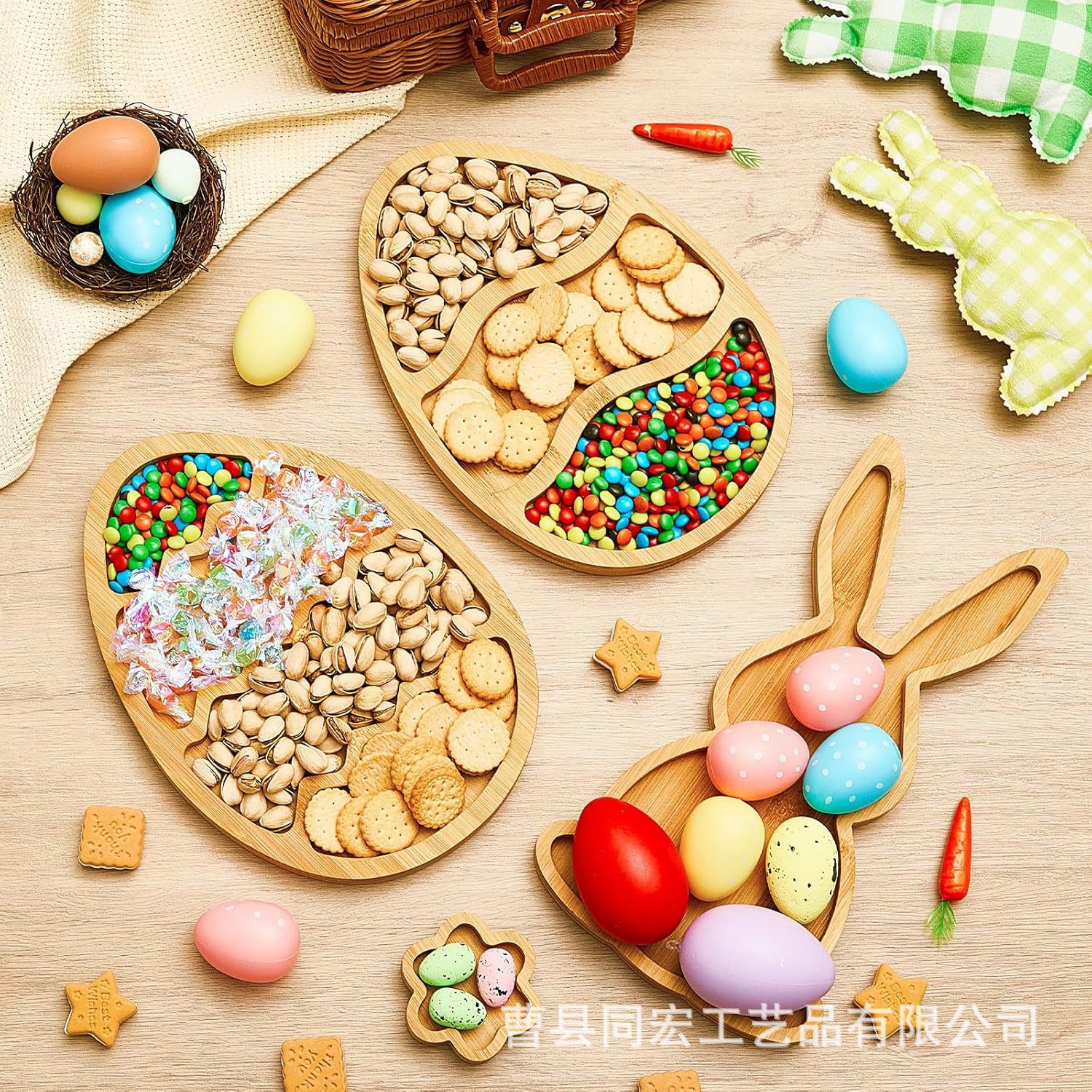 クロスボーダー木製のウサギの形のキャンディーのお菓子のトレーの漫画の子供の食事の皿のイースターの卵の雰囲気の装飾
