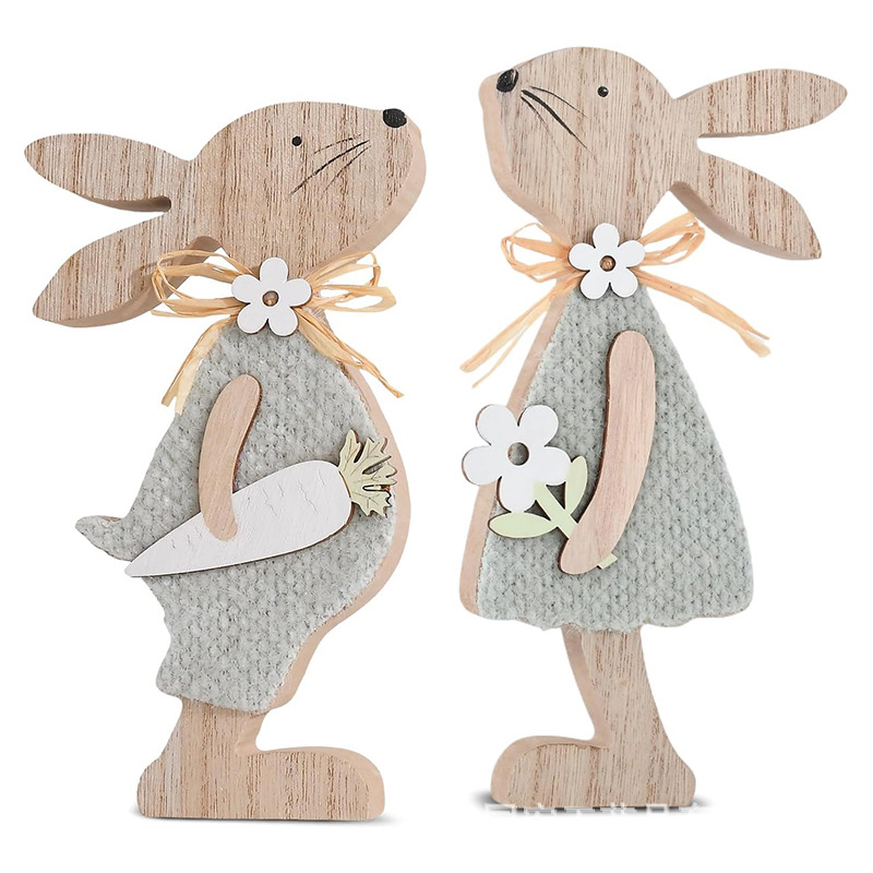 クロスボーダーイースター工芸品木製のウサギのデスクトップの置物のアイデアイースターの装飾のウサギの置物の卸売り