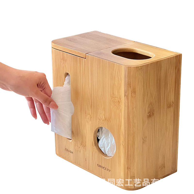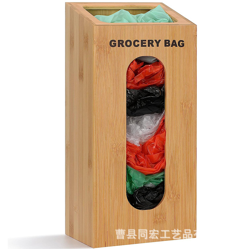 竹制ショッピングバッグ収纳ボックス雑货袋収纳棚ゴミ袋ディスペンサー木ボックス竹制保存袋収纳ボックス