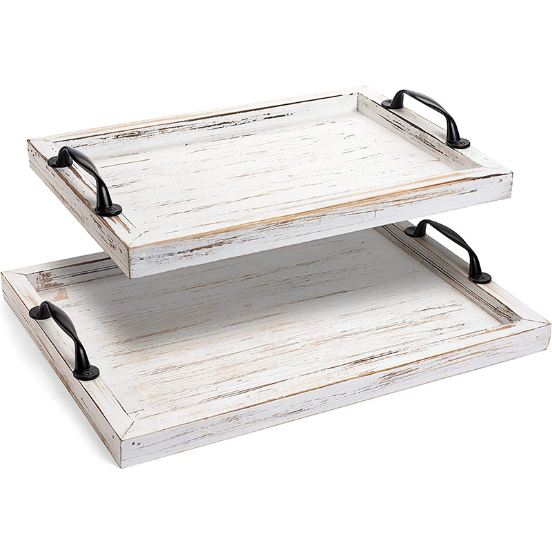 木製トレイ 輸入品 ハンドル付き長方形食器 日本風レトロパン・茶托・軽食トレイ 工場卸売