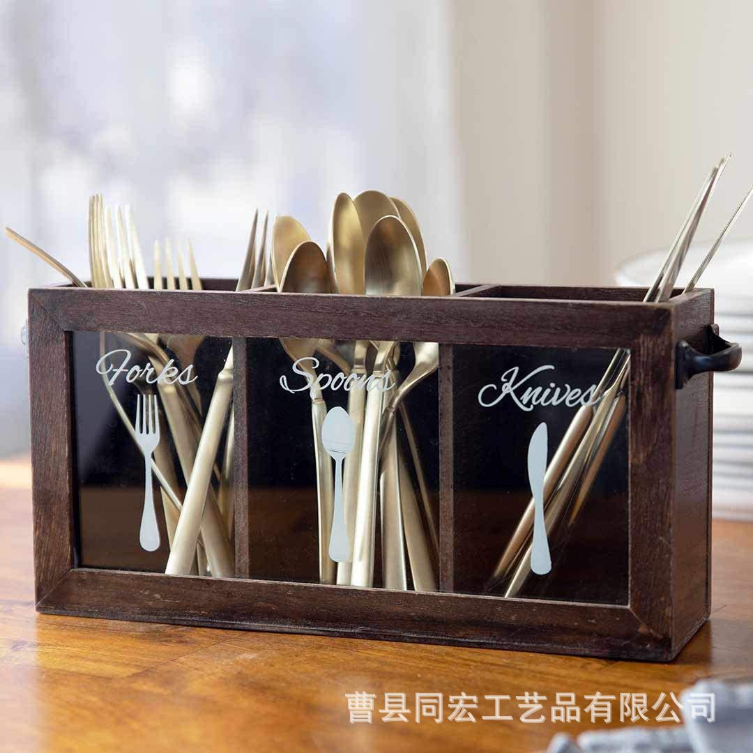 ヨーロッパ式木製ナイフフォーク収納ケースキッチン食器置物整理洋食ナイフフォークスプーン箸収納ケース