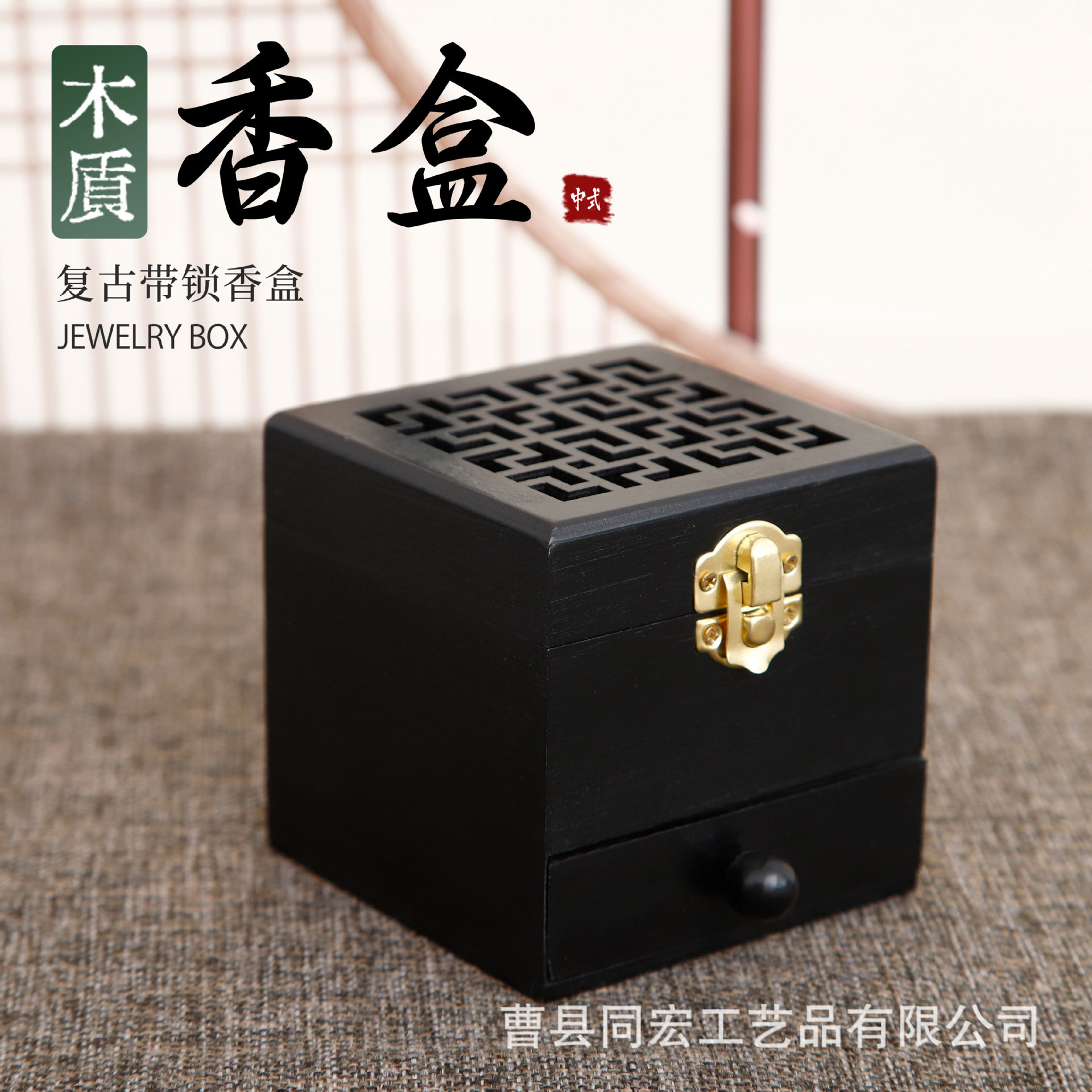 木製香炉香挿しベース香炉薫香器ヨガ水治療家庭装飾透かし彫り香炉箱檀香箱