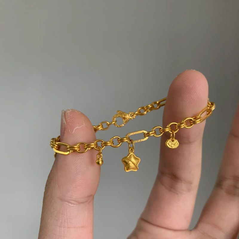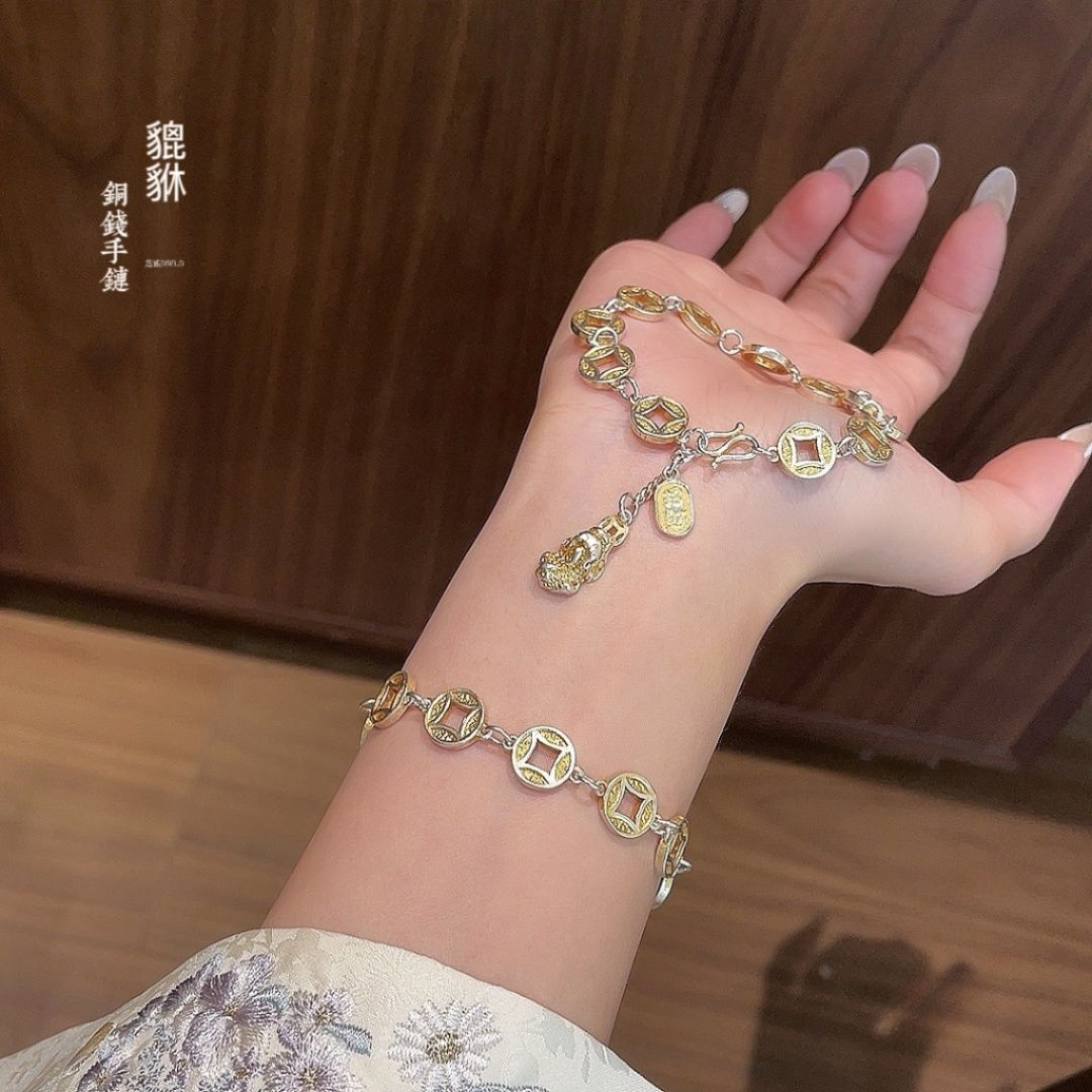 人気モデルの小衆古法金色長命ロック星ブレスレット新中国式古風漢服アクセサリー女性代発