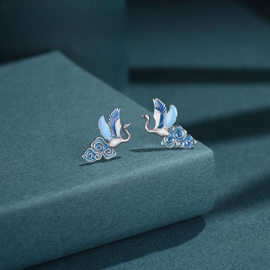 雲鶴ピアスエナメルレトロ百合民族風ファッション新中国式国潮高級感気質プレゼント