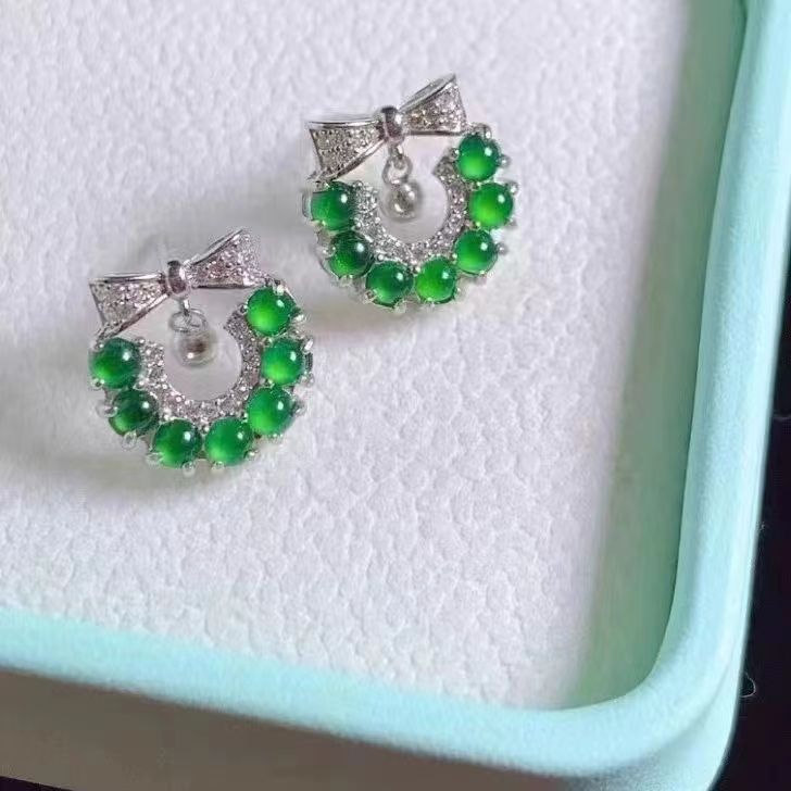 新作高冰種正陽緑玉卵面緑玉イヤリング、緑玉王様イヤリング、銅製ベルイヤリング、甘くておしゃれな通勤用