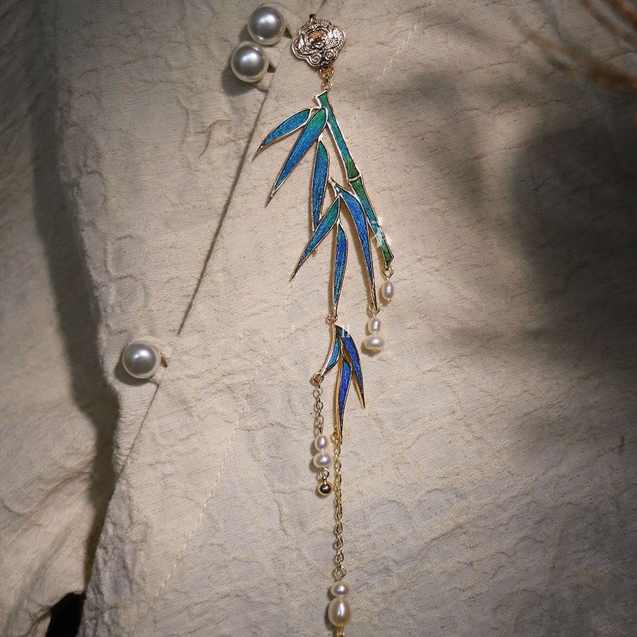 竹の葉の要素を模した翡翠風中国風新中式気質旗袍漢服襟飾り古典的エレガントなニッチな胸飾り女性用