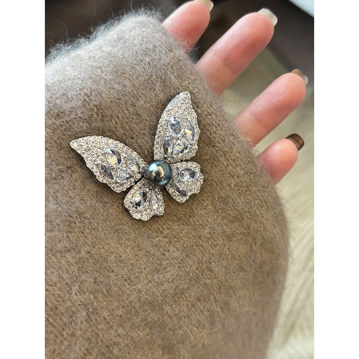 グレーパールパーソナライズされた多用途の蝶のブローチユニバーサルバタフライフリーフライギフト友人への新年のギフト