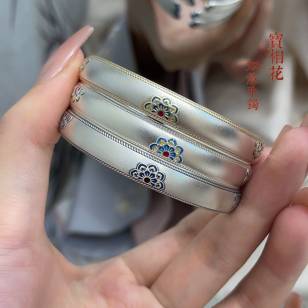 9ブレスレットエナメル色描金宝花ブレスレット新中国式中実開口如意ブレスレットプレゼント