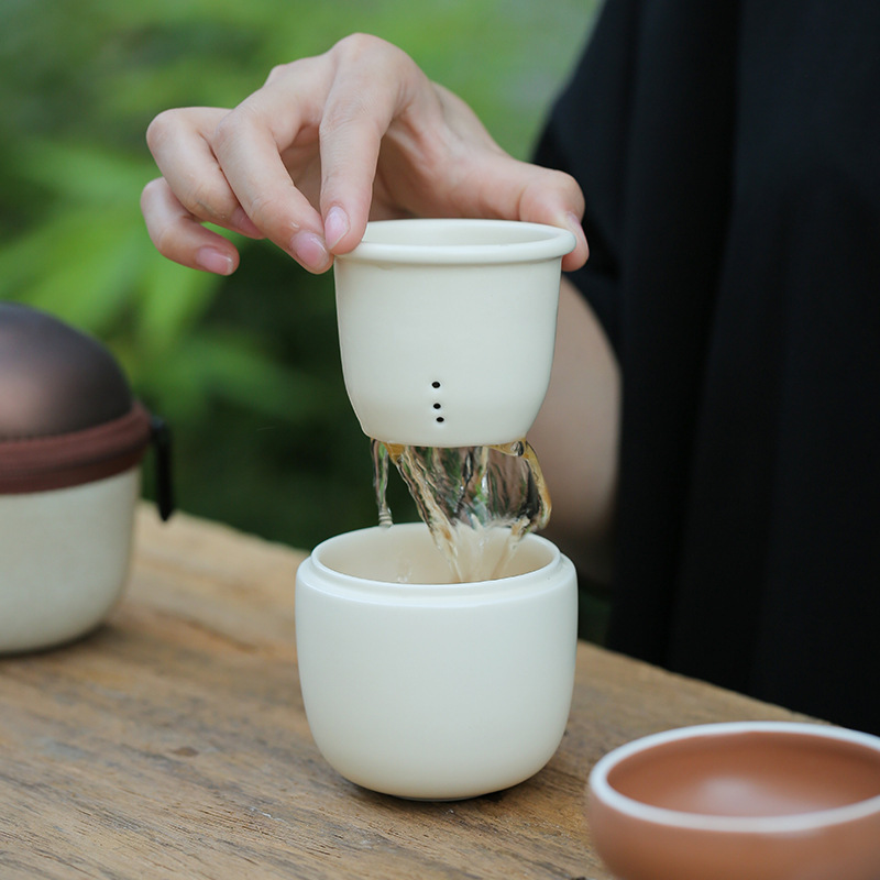 シンプルな松果陶磁器快客杯濾過蓋付きオフィスカップカップ屋外旅行携帯収納バッグ