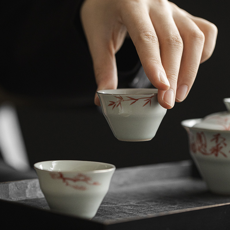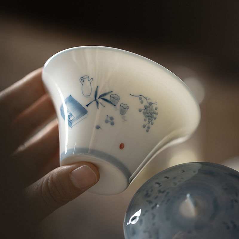 静道古青手描き四君子品茗杯カンフー茶器陶磁器杯