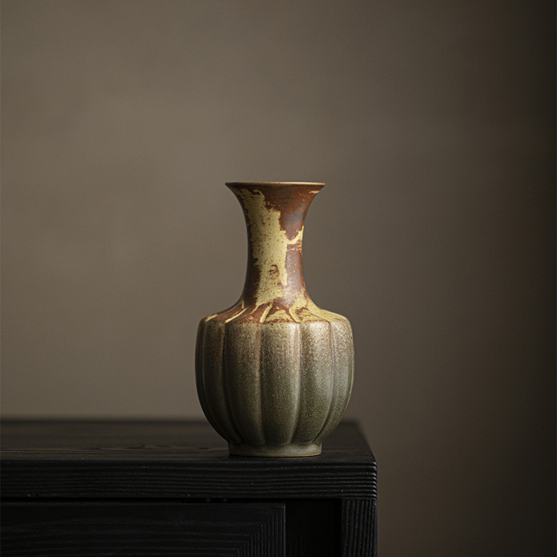 備前焼日本式花芸瓶筋紋器陶泥模造古花瓶茶室置物陶磁器瓶