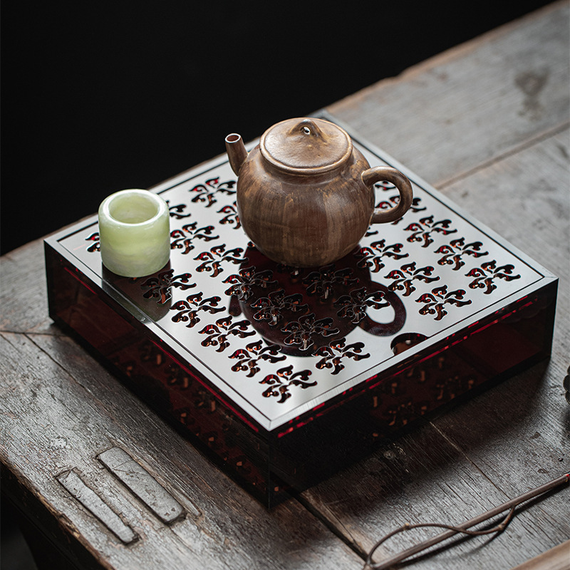 静道アクリル角型茶盤レトロな透かし彫りポットは小型の貯水乾燥台のトレーの工夫茶器の部品を受けています。