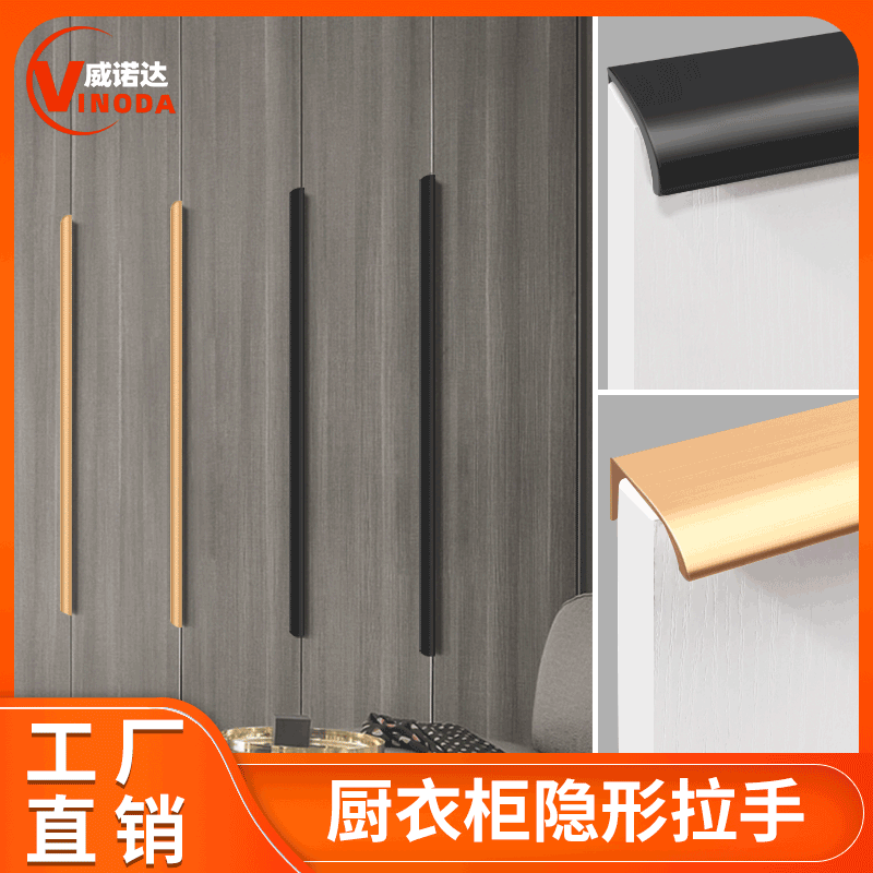 クローゼットのドアのアーチ形の見えない長い取っ手北欧の軽い豪華な金色の黒いキャビネットのドアのサイドは封をして縁を長くして取っ手の金属を延長します。