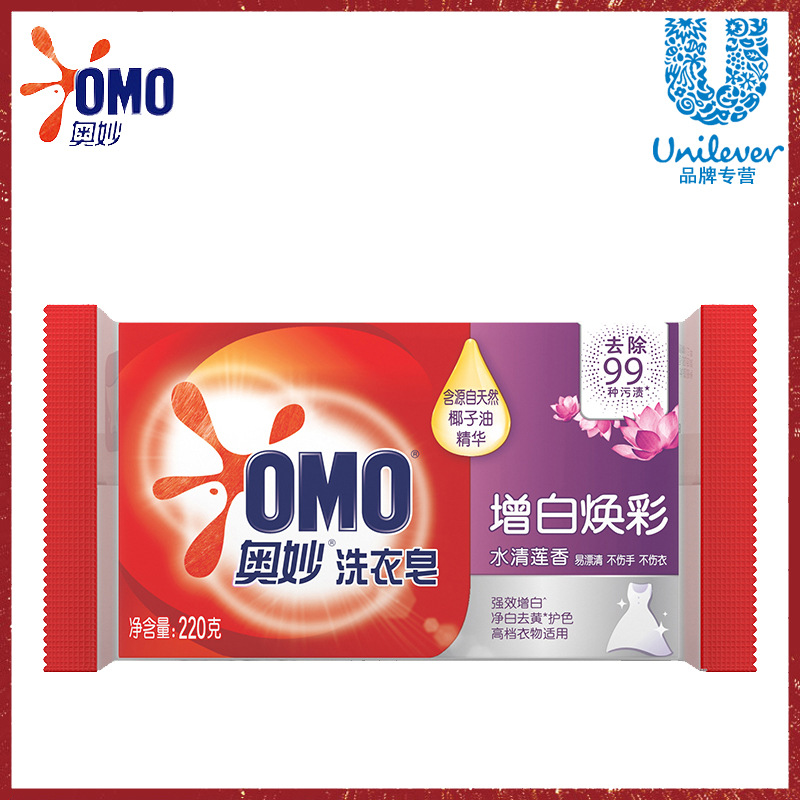 奥妙洗濯石鹸220gの美しい白石けん水蓮の香りが汚れを取り除き、清潔な衣類には天然ヤシ油が含まれている