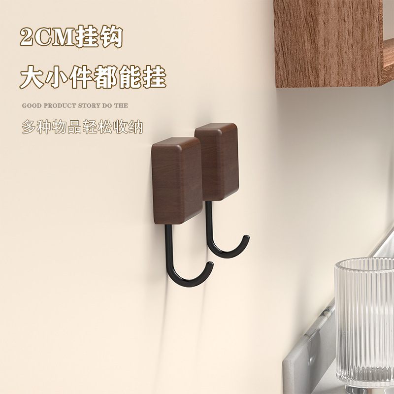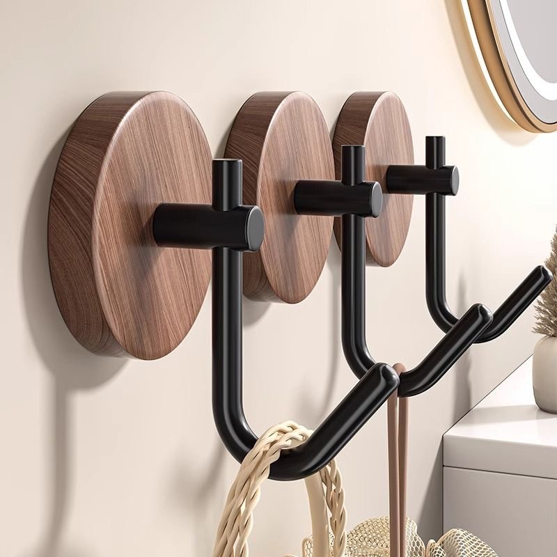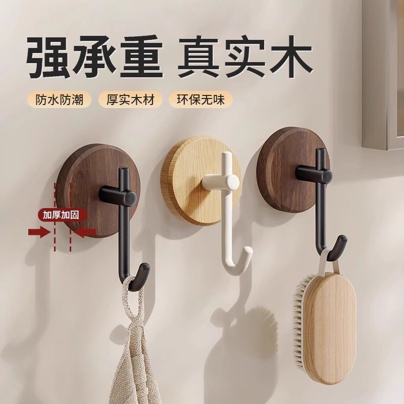 新しい北欧無垢材洋服フック、ウォールナットドアフック、パンチフリーコートフック、強粘着壁掛けコートハンガー