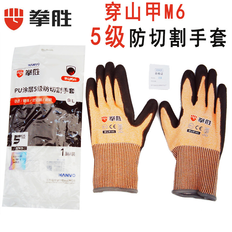 拳勝穿山甲m 6カット防止手袋puコーティング五級カット防止手袋カット防止手袋