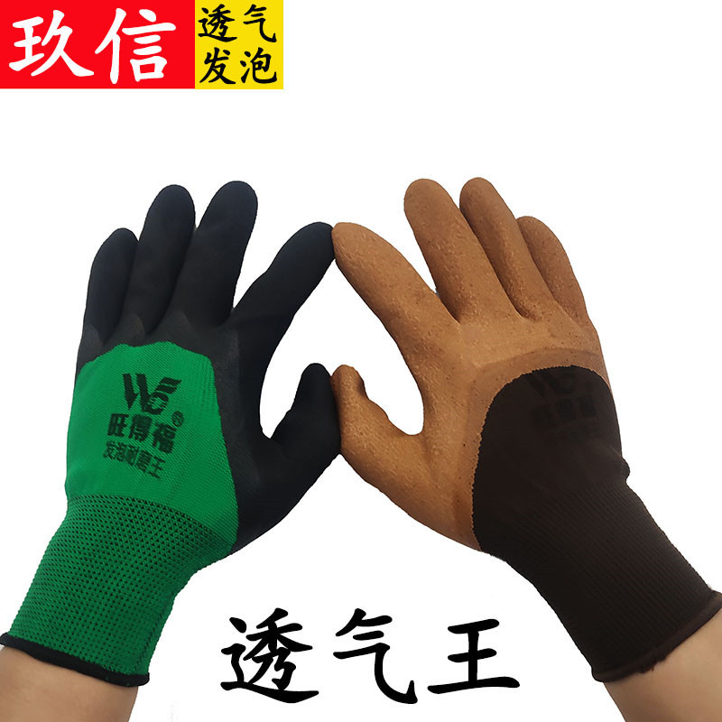 旺得福発泡耐摩耗王手袋通気浸糊しわ手袋工事現場建築滑り止め労働保護手袋