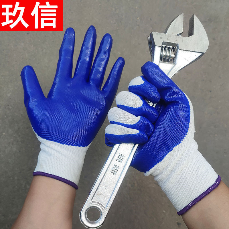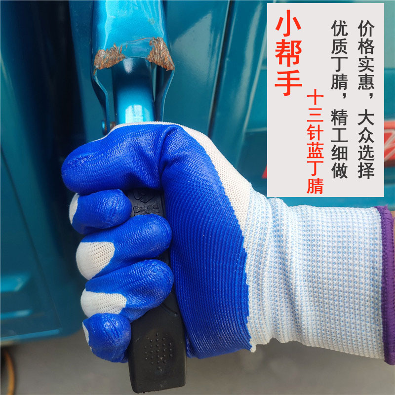 小助手十三針ナイロン手袋青いコーティング線浸ゴム手袋工事現場機械修理丁晴手袋