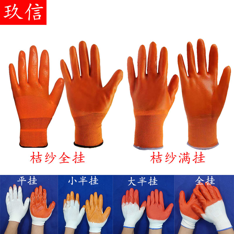 Pvcゴム手袋平掛け小半掛け大半分掛け全掛けゴム手袋白糸オレンジ糸労働保護手袋