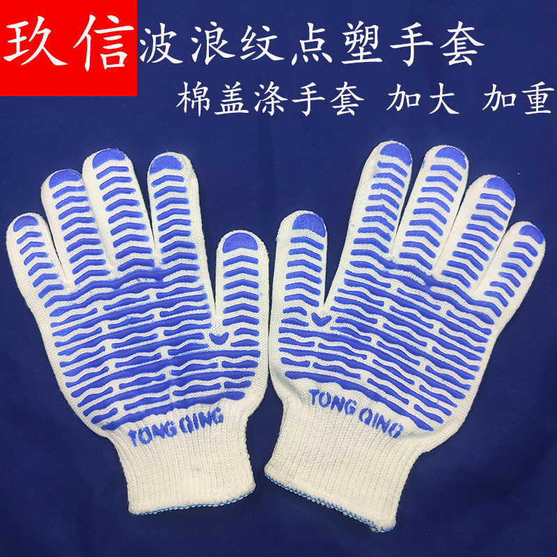 波紋点塑性手袋綿蓋ポリエステル綿線とナイロン糸点ゴム手袋工事現場で滑り止め労働保護手袋を運ぶ