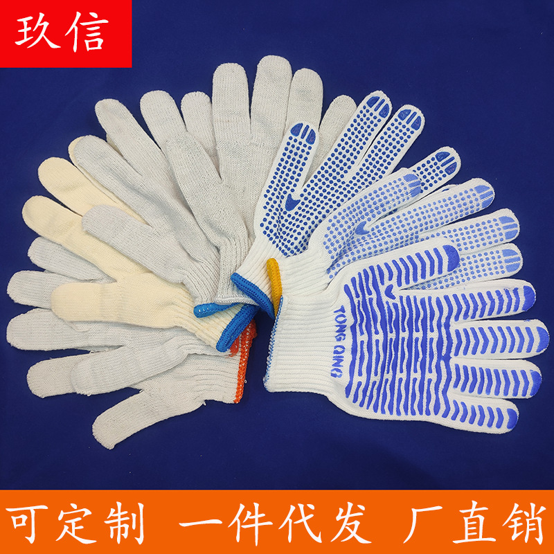 白綿線手袋ビーズ滑り止め園芸労働保護手袋厚い綿手袋保護ナイロン手袋卸売り
