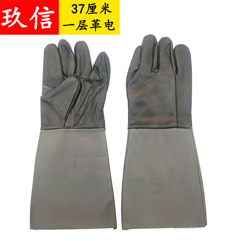 包郵便二層牛革電気溶接手袋反絨皮長溶接工手袋ガス溶接断熱難燃溶接工手袋