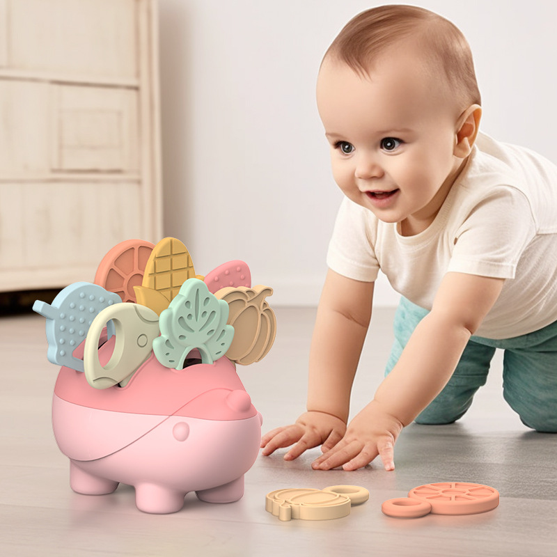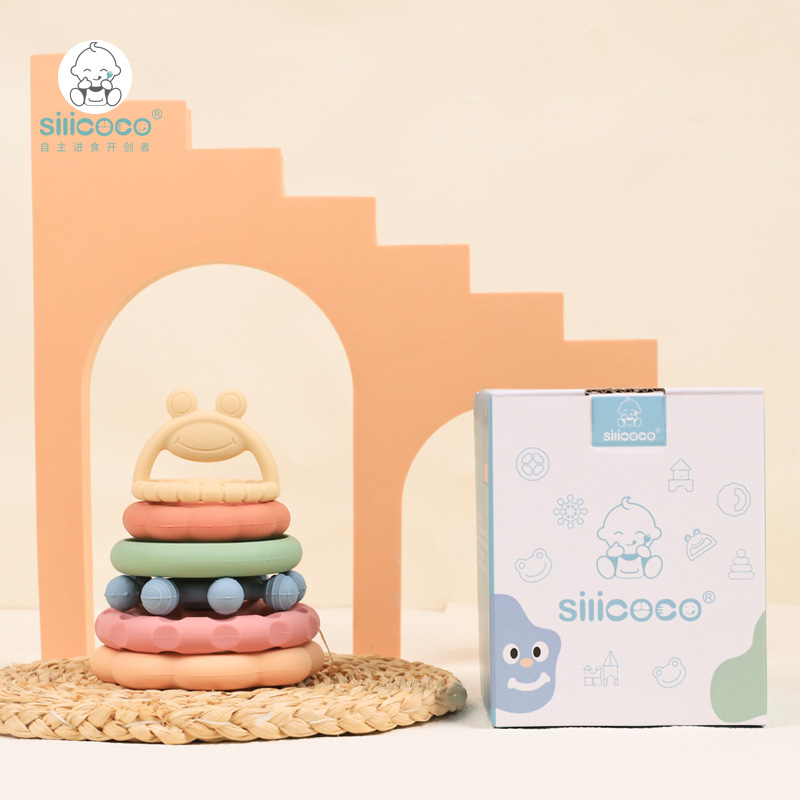 Silicocoの赤ちゃんのシリカゲルの積み重ね楽の赤ちゃんの歯を磨く棒は手のおもちゃの食品級のシリカゲルの歯を食べるのを防ぎます。