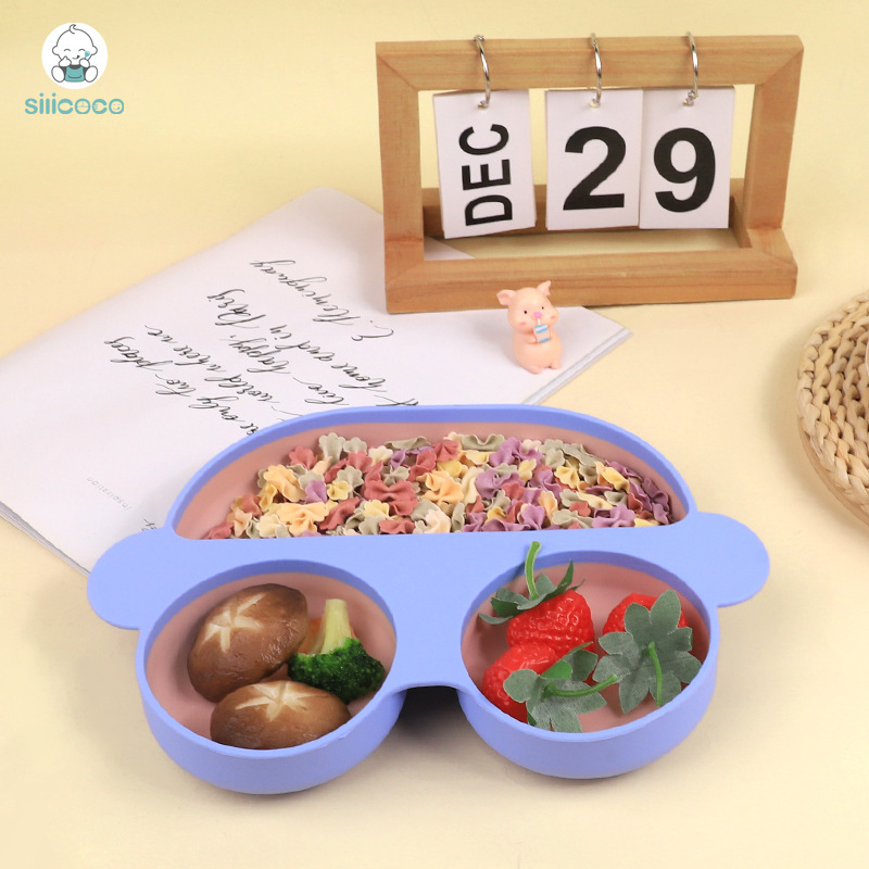 Silicoco乳幼児のプラチナ級シリカゲルの小さい車の食事の皿の赤ちゃんの食事の皿は皿を分けて投げます。