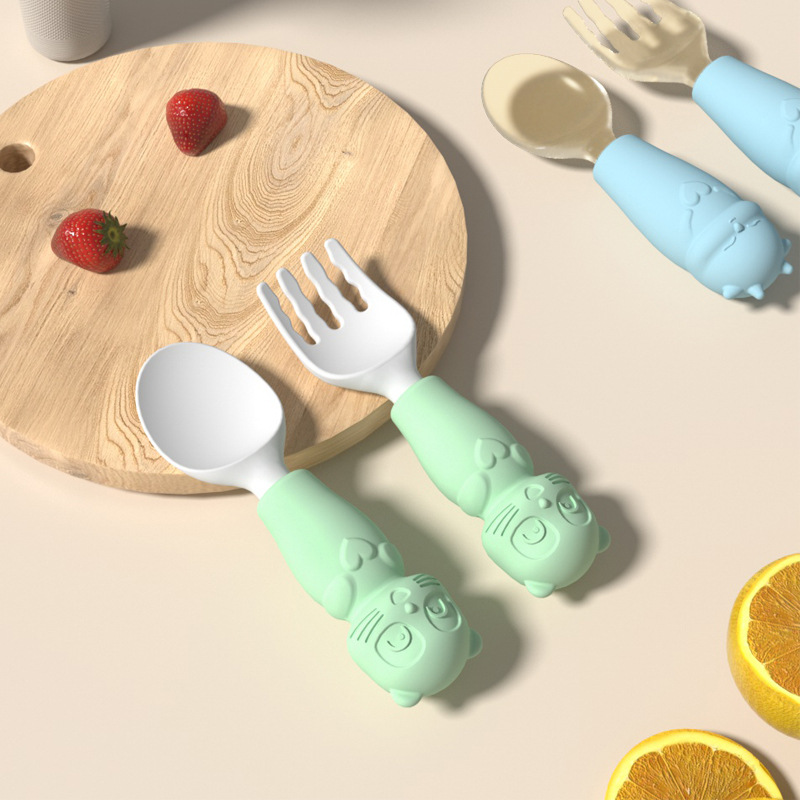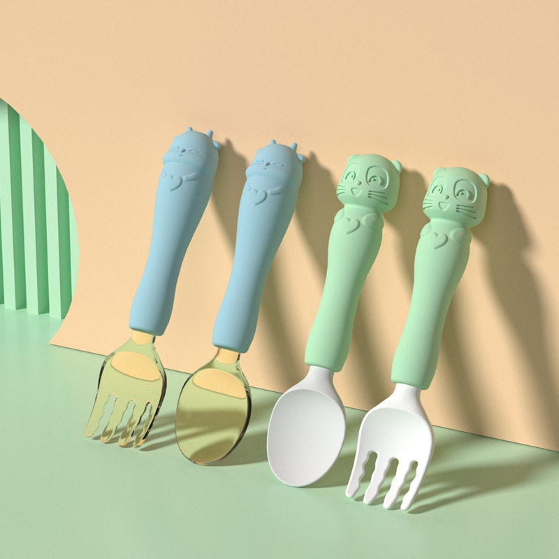 国境を越えた赤ちゃんins風飼育食器シリコンスプーンフォーク子供漫画補助食スプーンシリコンフォーク