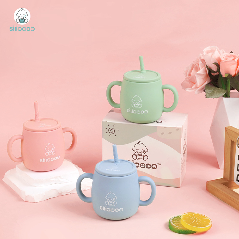 Silicocoの赤ちゃんのシリカゲルの学飲コップの牛乳は水のコップを飲みます。