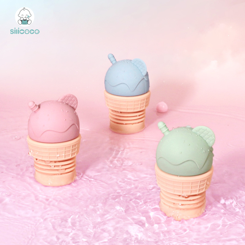 Silicoco赤ちゃんのお風呂のおもちゃの漫画の赤ちゃんは水のシリコンのアイスクリームを遊んで水が漏れます。