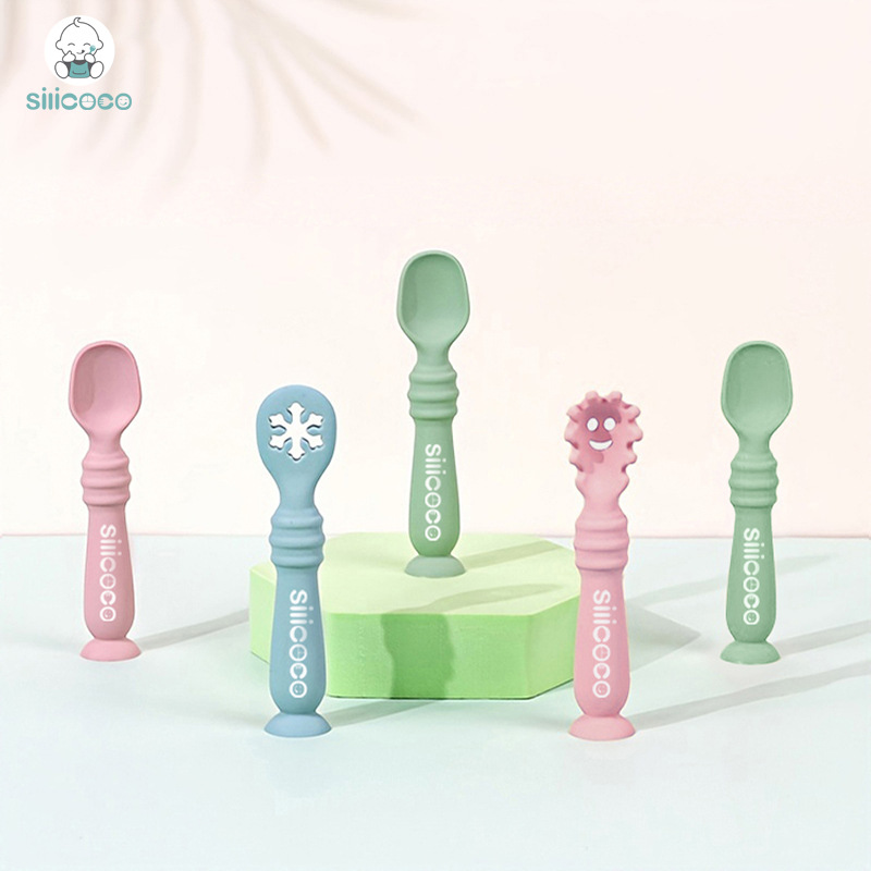 Silicoco赤ちゃんシリカゲル舐めスプーン赤ちゃんシリカゲル補助スプーン子供流動食スプーン母子用品シリカゲルスプーン