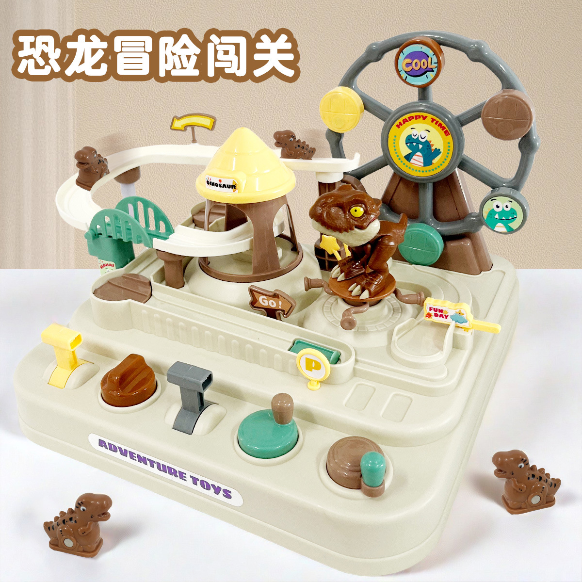 ディザトーンの新しいダイナミックな回転恐竜が大冒険滑り台で階段を登る軌道児童知育電動玩具