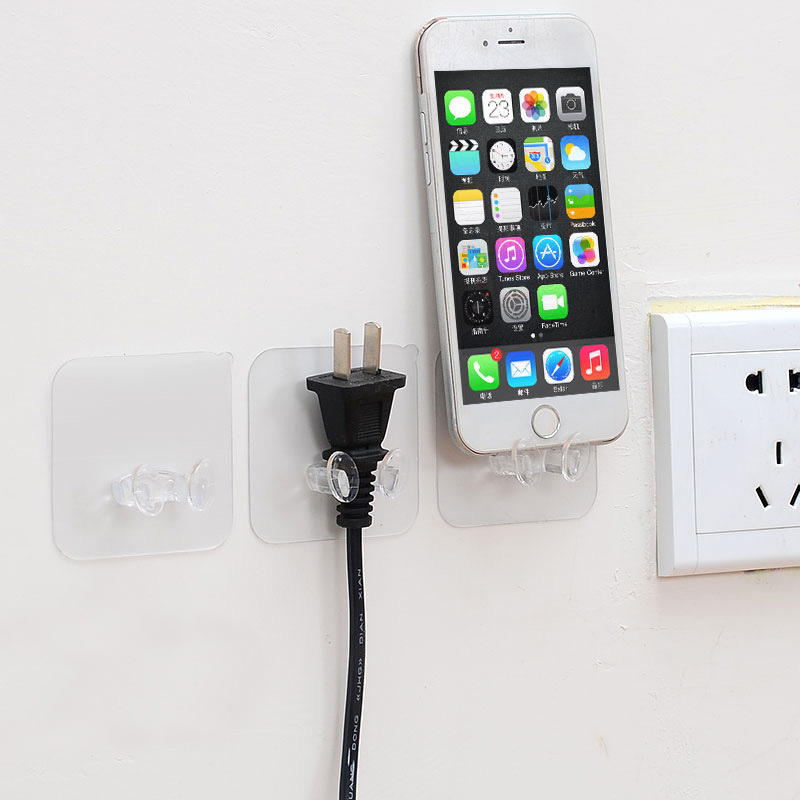 穴を開けないで跡のない電気器具のプラグのフックの卸売りの透明な貼り付け式の電源コードのコンセントの収納整理のハンガー