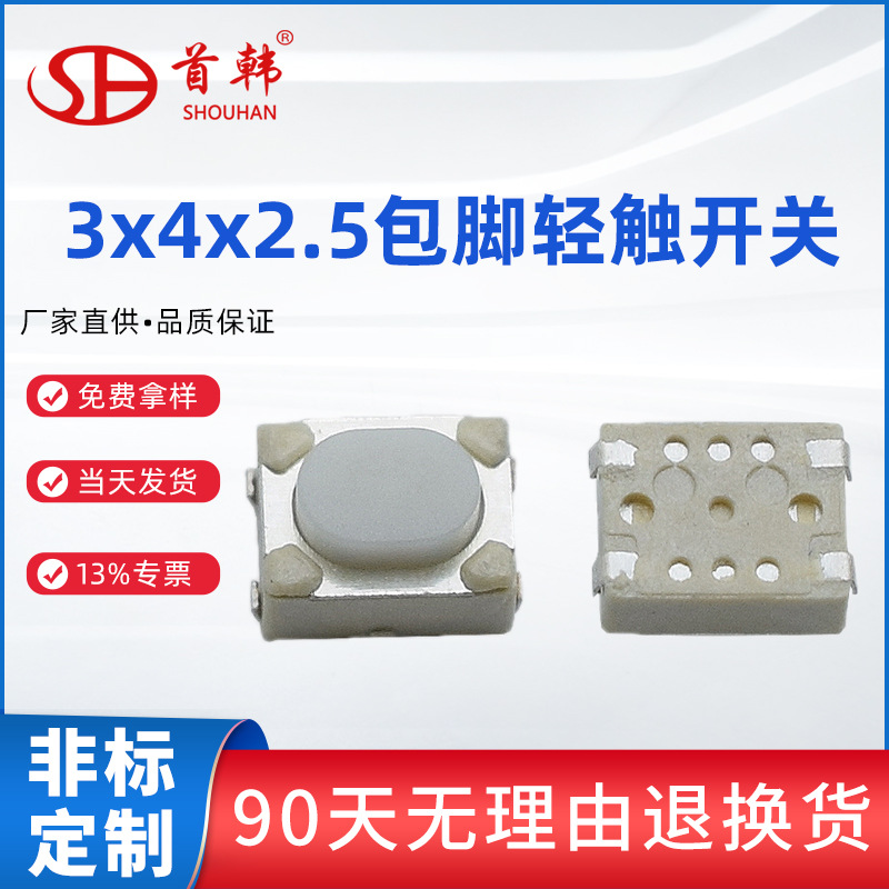 メーカーは3*4*2.5包足平足鴨卵スイッチ縦型白頭ボタン双弾片スイッチスポットを供給している
