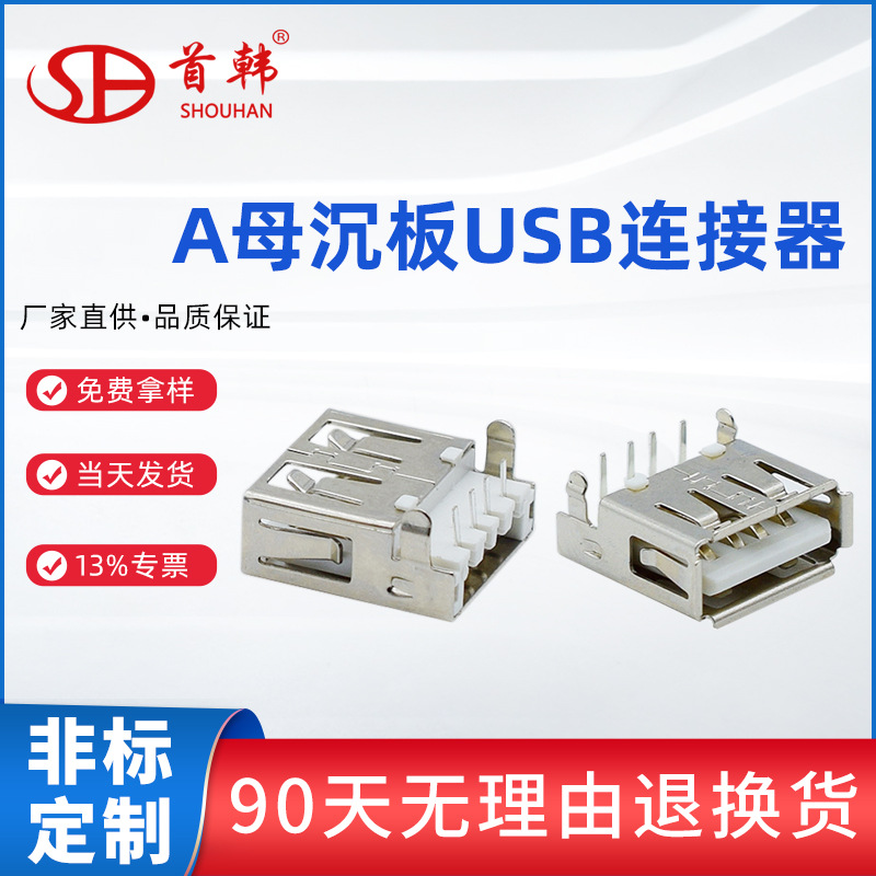 2.0母座沈板式平口a母usbプラグ縁なしaf90度usbコネクタ母座現物