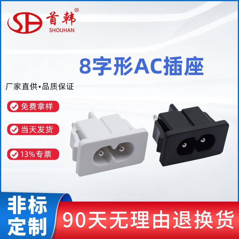 首韓8字形acソケット母座DB-8-06大電流双穴位二脚実芯直挿式電源母座