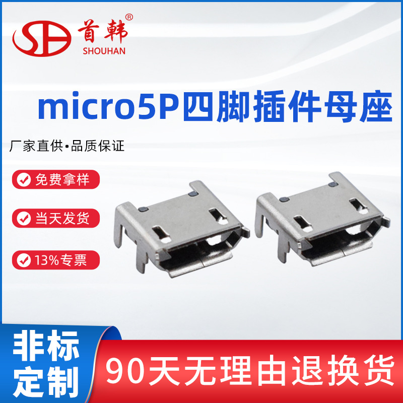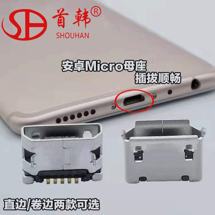 Micro5pパッチ四脚固定耐温難燃平口巻き口安卓充電台usb母座コネクタ