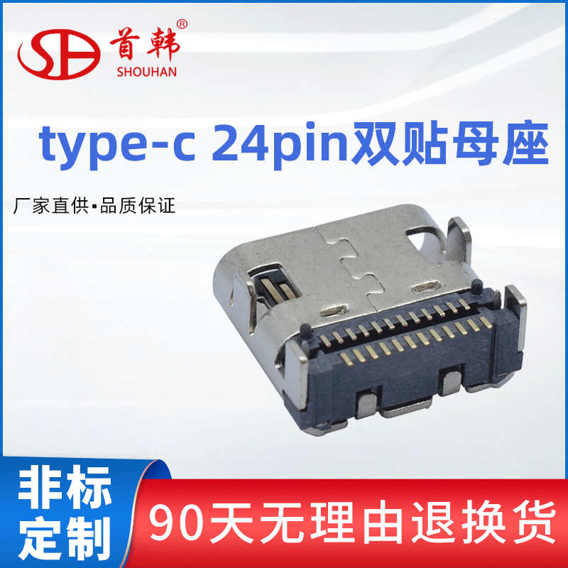 首韓卸売usb 3.1母座24pダブル貼りtype-c母座四脚ボードディップ二列パッチsmt