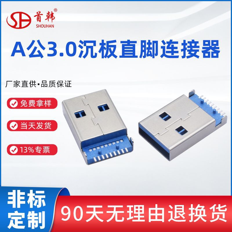 A公3.0沈板直脚usb雄コネクタam横型lcpブルーゴム鉄9pinパッチメーカー現物
