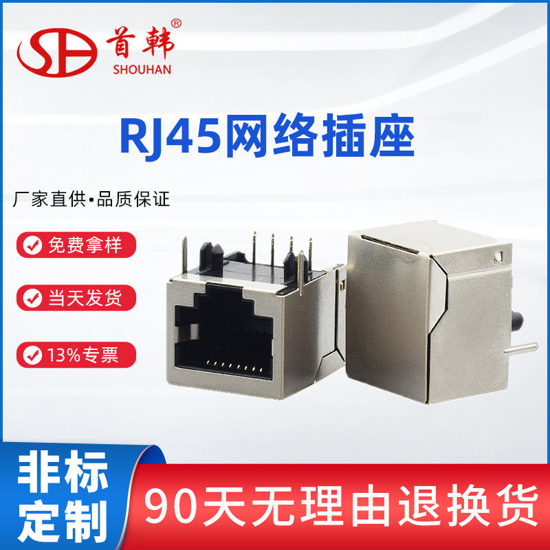 Rj45ネットワークインターフェースソケット8p 8c横型90度ストレートプラグインには、ライトネットコネクタのない母座があります。