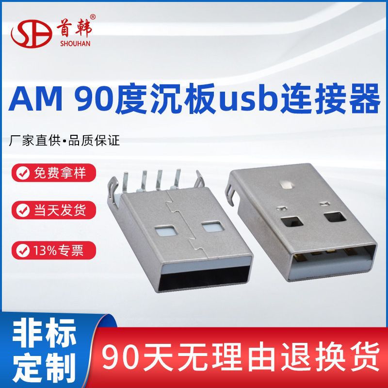 メーカー卸売りam90度沈板2.0usbコネクタ充電雄ソケット4p横型プラグイン固定脚付き
