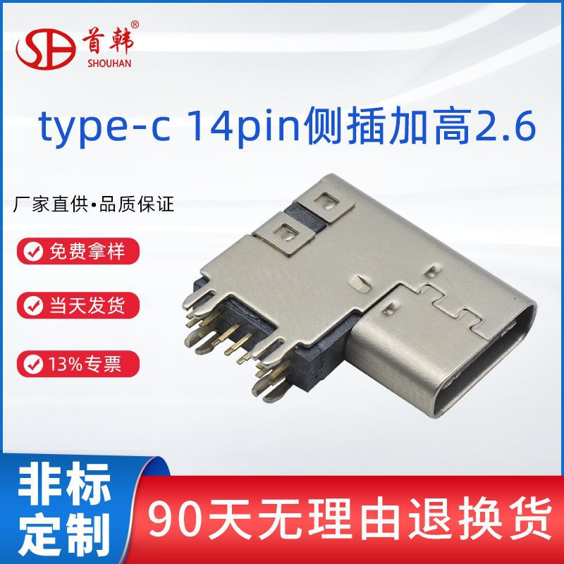 Usb 3.1type c母座14pin二列側プラグ高さ2.6mm急速充電プラグイン大電流コネクタ