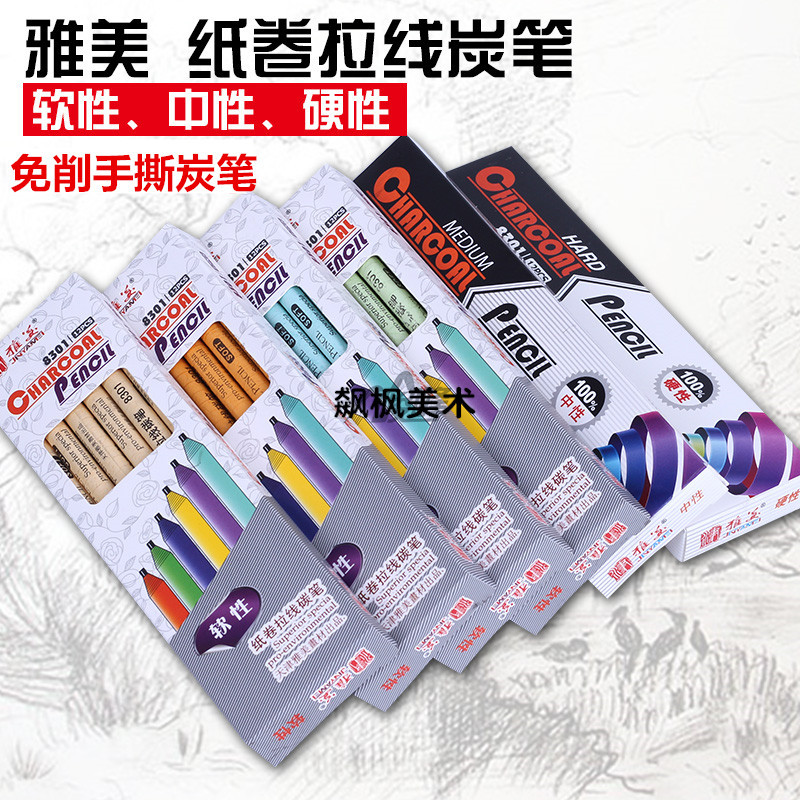 雅美紙巻き手引き裂き木炭ペン炭素ペン軟性中硬性絶えず芯速書きスケッチ鉛筆