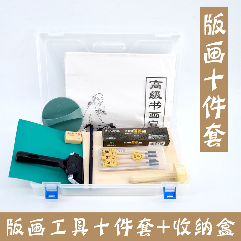 初心者のプリント道具セットの木の彫刻板のプリントのゴム板のマリのインクの木の彫刻の刀の馬蓮のローラー