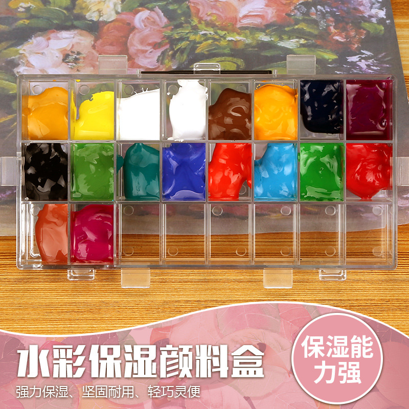 水彩保湿ボックス36格パレットボックス24格絵の具ボックス保湿透明ポータブル油絵皿パレット