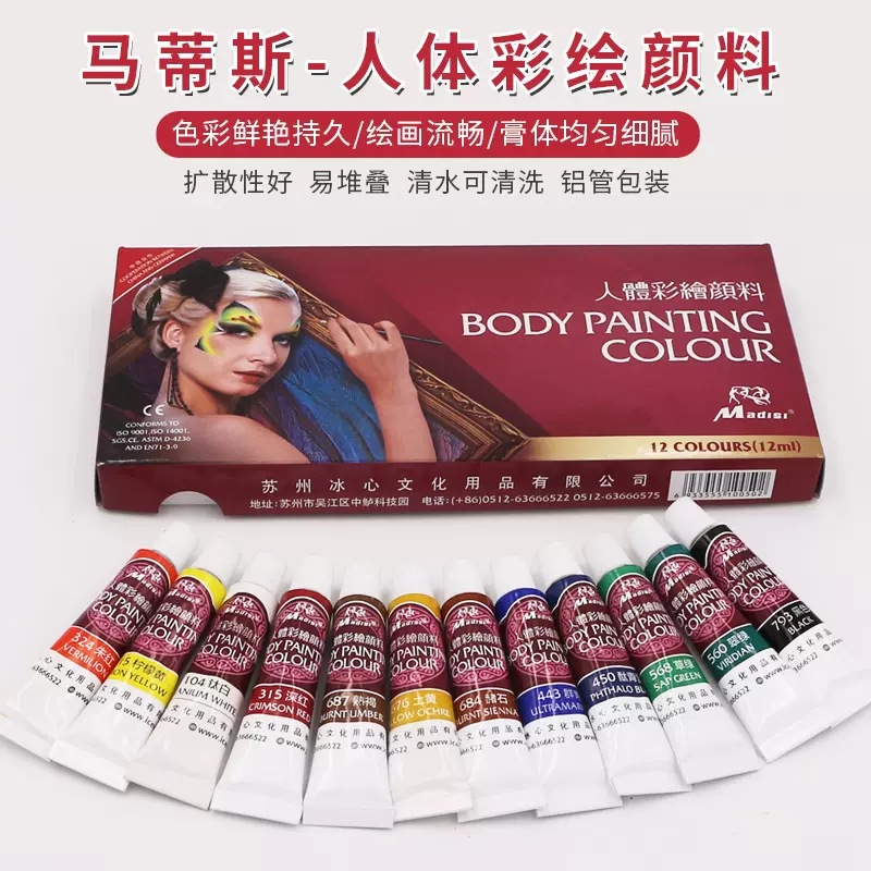 マティス12色12mlボディーペイント絵の具子供用色絵油彩ハロウィーン仮面舞踏会色絵絵の具