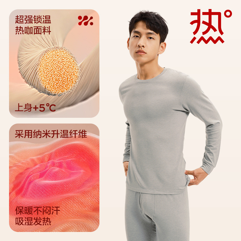 網易厳選コーヒー炭素保温下着男秋冬秋衣秋ズボンセット
