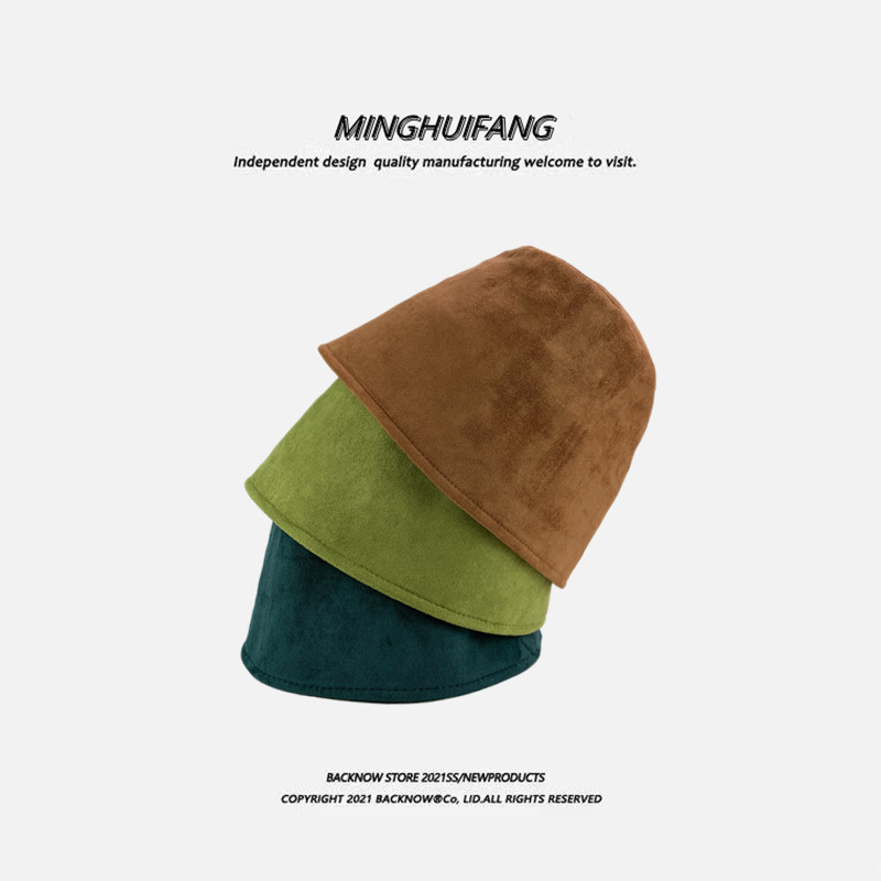 鹿の皮の絨毯のすっぴんの顔は顔の漁師の帽子の女性の秋冬の日の韓国版の百合のネットの赤い日は顔の小さいバケツの帽子を現像します。